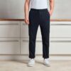 65% polyester recyclé / 35% coton. Taille élastique et cordon de serrage. Braguette à fausse couture. Bas de jambe fuselé avec ourlets retroussés.
