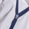 60% polyester / 40% caoutchouc. Bandes élastiques dos en Y. 3 pinces simples à clipser pour un maintien parfait. Ajustable grâce à un système de boucle de serrage. Empiècement en simili cuir.