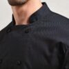 65% polyester / 35% coton sergé. Panneau central au dos fabriqué à partir du tissu Coolchecker® qui permet une gestion de l’humidité et d’évacuation de la transpiration. Fermeture avant à dix boutons en tissu. Col mandarin avec glissière à la nuque. Double poche pour stylo sur le bras gauche. Lavage domestique à 60°C.