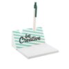 Porte-stylo en papier graine sur mesure avec papier autocollante. Comprend 50 feuilles de notes autocollantes en papier recyclé (100×75 mm). Le prix comprend l’impression en quadri sur le dessus. Quantité minimale : 100 pièces. Avec un assortiment de graines de fleurs sauvages. Matieres : : Papier semences , Papier recyclé.