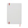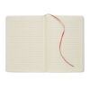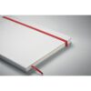 Carnet A5 à couverture rigide composé de 70% de briques de lait recyclées et de 30% de papier recyclé. Couverture blanche. 160 pages lignées en papier recyclé (80 feuilles). Fermeture élastique, marque-page assorti à la couleur du carnet. La couleur est révélée après la gravure au laser.