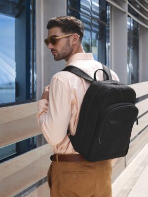 100% Polyester 600D recyclé. Large ouverture zippée pour un accès facile. Pochette interne rembourrée pour tablette/ordinateur portable jusqu’à 13 pouces.