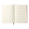 Carnet A5 avec couverture en toile rigide. Reliure dos collé. 192 pages lignées (96 feuilles en papier recyclé). Bande élastique de fermeture contrastée et ruban marque-page.