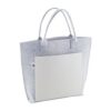 Sac Ă provisions en feutre RPET, sur mesure, avec poche frontale imprimĂ©e en couleur. PoignĂ©es courtes, soufflet au fond et Ă©tiquette RPET distinctive. Le prix comprend l’impression en sublimation. QuantitĂ© minimale de commande : 25 pièces. Matieres : : Feutre en PET recyclĂ©.