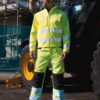 Tissu contrecollé 3 couches. Couche extérieure : 93% polyester / 7% élasthanne. Couche intermédiaire : membrane impermeable 5.000mm et respirante 3000 gr/m2/24 en polyuréthane thermoplastique. Couche intérieure : microfibre de polar pour une meilleure capacité thermique. Doublure : haut du dos Taffeta 100% polyester. 2 poches latérales à glissière. 1 poche poitrine à glissière. 2 grandes poches intérieures et 1 poche intérieure pour téléphone. Pan de dos plus long. Rabat tempête intérieur. Galons de sécurité de 50 mm cousus intégrant les matériaux réfléchissants scotchlite de 3M.EN ISO 20471:2013 catégorie 2.