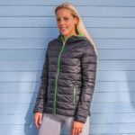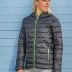 Extérieur : 100% Nylon 20D. Doublure : 100% Nylon 20D. Isolation : 100% Polyester 220 g/m². Capuche intégrée réglable. Résiste à l’eau et coupe-vent. Fermeture et poches avant zippées. Taille cintrée. Poignets élastiqués doux. Design matelassé. Rembourrée à la main. Toucher très doux et aéré. Extrêmement léger et chaud. Facile à ranger.