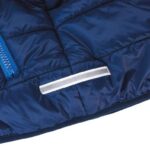 100% polyester, coupe-vent et déperlant. Très doux, léger et chaud. Doublure intérieure, finitions contrastées et fermeture zippée. Biais de finition poignets et bas de vêtement. Bandes réfléchissantes sur les côtés. Capuche attenante, dans la prolongation du col. Poches zippées. Bride de suspension. Facile à ranger et compacte. Accès personnalisation. Lavage à 60°C.