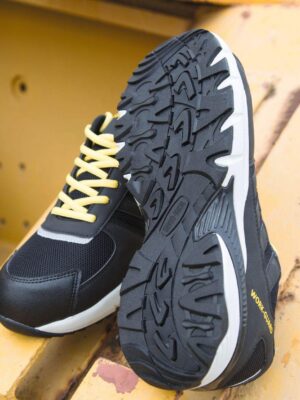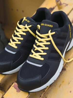Tige: PU artificiel et Mesh. Semelle EVA/Caoutchouc. Embout de protection en composite. Semelle intermédiaire en composite pour protéger sous les pieds. Chaussures tige basse poids plume au look sportif. SRC Antidérapant. Antistatique. Finition réfléchissante. Protection anti-éraflures. Lacets de rechange. EN 20345:2011 S1P SRA.