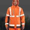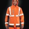 100% ¨Polyurethane (extérieur) et 100% Polyester recyclé (dos). Cette veste de sécurité imperméable de style scandinave, avec capuche amovible et coutures soudées, offre une protection optimale contre les intempéries grâce à son tissu épais et doux. Elle est équipée de bandes réfléchissantes imprimées, de poches zippées et d’un rabat-tempête à boutons-pression. Fabriquée à partir de matériaux recyclés, elle allie confort, durabilité et respect de l’environnement. Conforme aux normes : EN ISO 20471:2013+A1:2016 Class 3 – RIS-3279-TOM: ISSUE 2:2019 Class 3 – EN343 3:1