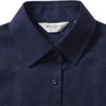 70% coton Oxford – 30% polyester. Véritable facilité d’entretien, repassage minimum. Pinces au niveau du buste et du dos pour une coupe plus seyante. Empiècement de col à 2 boutons avec col de forme classique. Poignets réglables arrondis à 2 boutons.