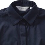 75% coton / 25% élastomultiester (fibre Lycra® T400). Cette nouvelle fibre apporte confort, élasticité, tenue durable et gestion de l’humidité. Col moderne. Patte de boutonnage cachée. Panneaux princesse, sans coutures latérales. Pinces au dos. Manchettes napolitaine. Coupe cintrée.