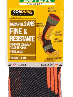 89% polyamide / 9% polypropylène / 2% élasthanne. La fibre Cordura® utilisée dans la semelle procure une longévité exceptionnelle à ces chaussettes. Elles ont été testées en condition réelle à l’ENSA sur des centaines de kilomètres et sont garanties sans trou au talon et à la pointe 2000km/2ans (premier terme échu), dans le cadre du respect des indications de lavage. Ultra-fines – Ultra-légères. Spécial randonnée.
