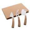 Set de 3 couteaux à fromage en acier inoxydable avec manches en bois d’acacia. Livré dans une boîte en forme de livre en papier kraft. Matieres : : Acier inoxydable , Bois . Passe au lave-vaisselle : Non Passe au micro-ondes : Non.