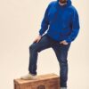 Sauf White et Heather Grey – 260 g/m². 80% coton / 20% polyester (sauf Dark Heather Grey : 60% coton / 40% polyester). Capuche doublée avec cordons plats ton sur ton. Poche Kangourou. Taille et poignets avec bord-côte en coton / Lycra®.