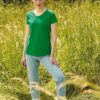 100% coton (sauf Heather Grey : 97% coton / 3% polyester et autres coloris Heather 50 % coton / 50 % polyester). Coupe féminine cintrée avec longueur de corps réajustée. Col rond féminin en coton / Lycra® avec bande de propreté.
