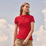 65% polyester / 35% coton. Maille piquée. Col et bas de manche en bord-côte 1×1. Fentes latérales. Fermeture 2 boutons ton sur ton. Bande de propreté. Lavable à 60°C.