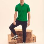 100 % coton piqué (Heather Grey : 97% coton / 3% polyester). Bas de manche en bord-côte. Patte avec trois boutons ton sur ton. Fentes sur le côté.