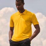 65% polyester / 35% coton. Col et bas de manches en bord côte 1×1. Patte à 3 boutons ton sur ton, rechange cousu à l’intérieur. Bande de propreté au col. Coutures d’épaules renforcées. Lavable à 60°C.