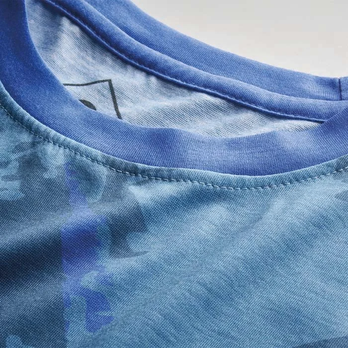 T-shirt à col rond en polyester au toucher coton avec impression totale sur le devant, le dos et les manches. Créez vos propres motifs et logos avec un nombre illimité de couleurs.