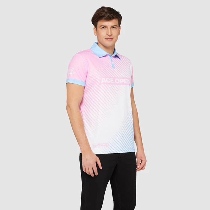 Polo sublimé fabriqué à partir d’un tissu en maille respirante 145 g/m² testé en laboratoire, évacuant l’humidité et doté d’un col et de bas de manches imprimés. Coupe ajustée.