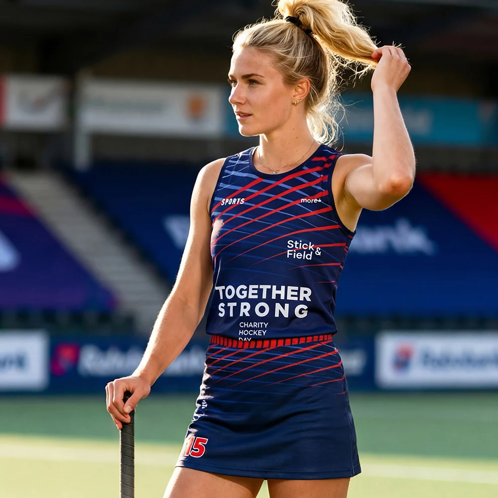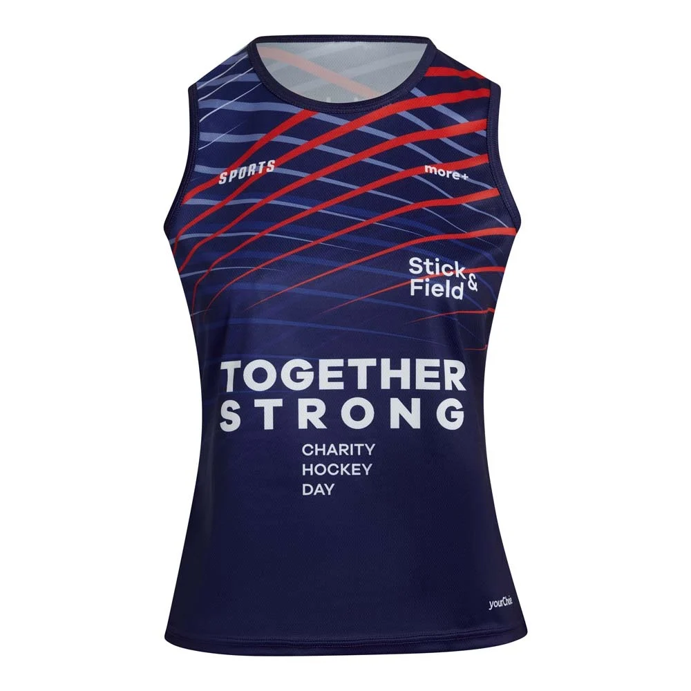 Débardeur sublimé pour hockey sur gazon, fabriqué en polyester mesh respirant de 145 g/m². Personnalisez vos motifs et logos avec un nombre illimité de couleurs. Ajoutez un short (hommes) ou une jupe (femmes) pour créer votre kit sur mesure !
