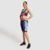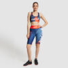 Legging court taille haute de qualité supérieure sublimé en tissu extensible dans les 4 sens, doux et évacuant l’humidité. Polyester 220 gsm avec 18 % d’élasthanne.