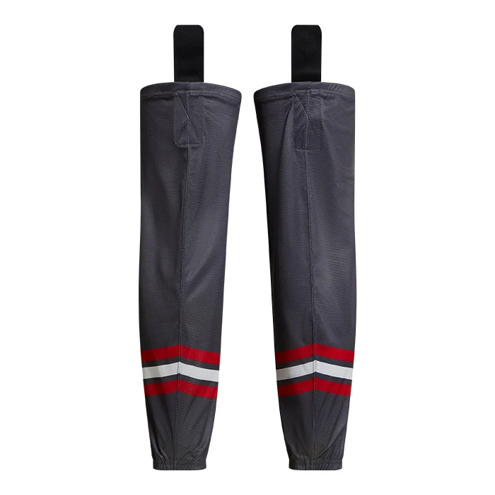 Ces chaussettes de hockey sur glace sublimées, fabriquées en polyester respirant de 220 g/m², garantissent une excellente visibilité de votre marque sur la glace.