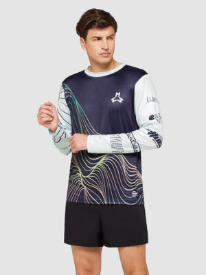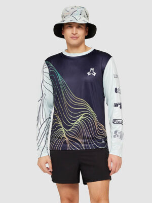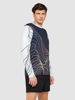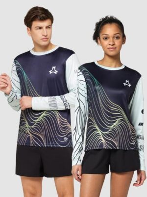 Maillot sublimĂ© Ă col ras du cou et Ă manches longues, en polyester anti-UV certifiĂ© EN13758 avec 8% d’Ă©lasthanne. IdĂ©al pour les sports et activitĂ©s de plein air.