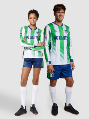 Maillot sublimé de première qualité à col V émoussé et à manches longues, en polyester. Créez votre propre design et personnalisez-le pour chaque joueur ! Ajoutez des shorts pour créer votre propre kit personnalisé !