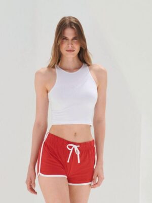 100% coton jersey. (H. Grey 85% Cotton / 15% Viscose). Biais de finition et cordon de serrage contrastés. Taille élastiquée.