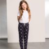 96% coton / 4% élasthanne. Pantalon de pyjama extensible avec taille élastiquée et faux cordon de serrage. Ourlet retroussé dans le même tissu. Etiquette détachable.