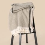 100% coton. Dimensions : 135 x 195cm (variations possibles selon la complexité du tissage). Produit lavé. Fouta avec franges aux extrémités. Tissage double face avec effet de matière, l’une plus claire dans des tons beiges. Rayures décoratives, dont certaines contrastées aux extrémités.