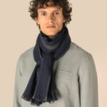 50% coton, 50% viscose. Chèche tissé avec franges, orné de rayures marine et beige contrastées. Tissés artisanalement, nos chèches peuvent présenter de légères variations de couleur d’une pièce à l’autre, signe d’un savoir-faire authentique.