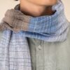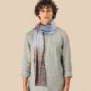 100% coton. Chèche tissé avec franges, orné de motifs graphiques aux rayures bleu, marron et gris. Tissés artisanalement, nos chèches peuvent présenter de légères variations de couleur d’une pièce à l’autre, signe d’un savoir-faire authentique.