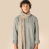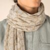 100% coton. Chèche tissé avec franges, orné de motifs abstraits sur fond beige. Tissés artisanalement, nos chèches peuvent présenter de légères variations de couleur d’une pièce à l’autre, signe d’un savoir-faire authentique.