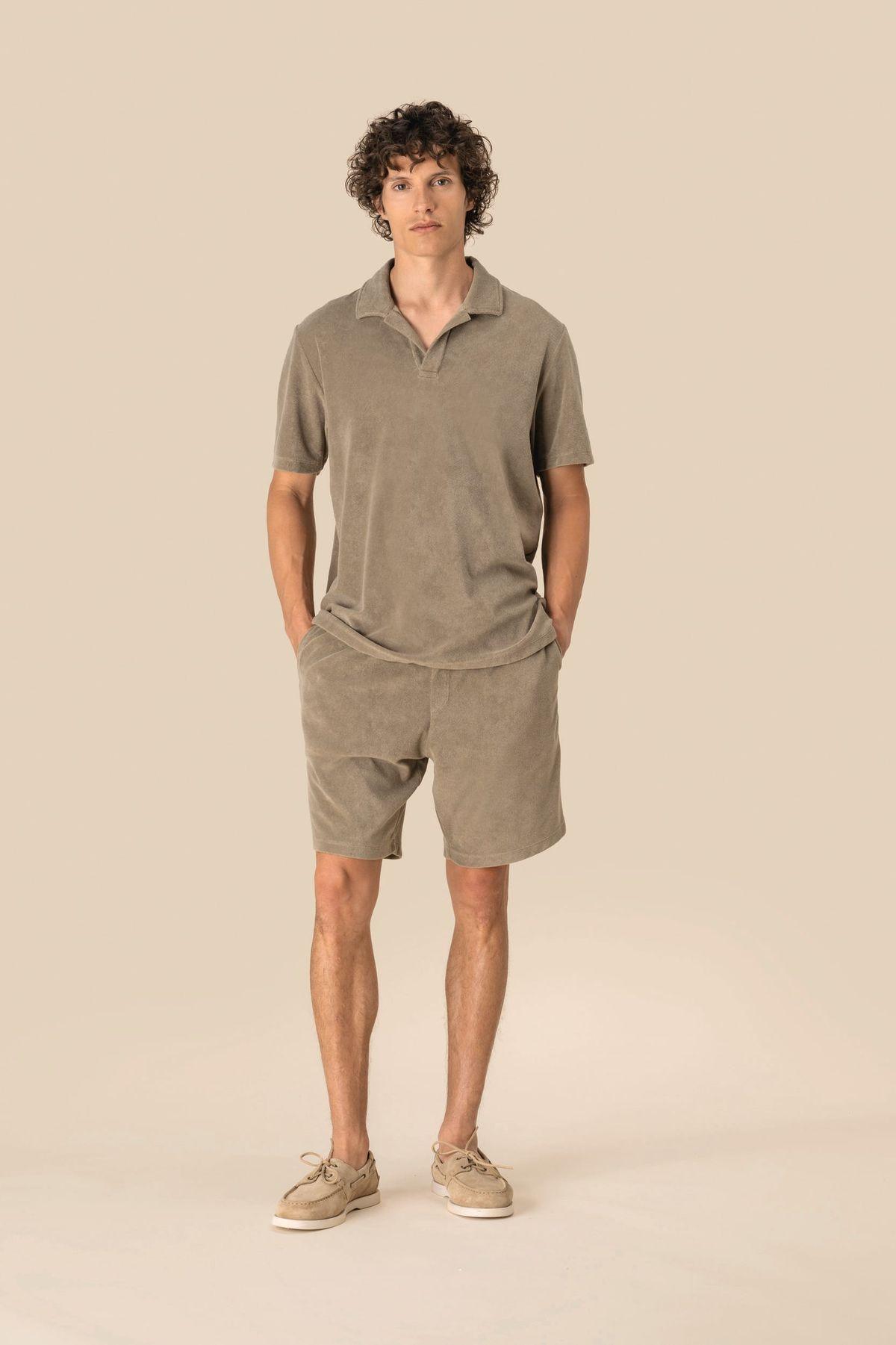 80% coton biologique / 20% polyester recyclé post-consumer. Fabriqué au Portugal. Coton peigné. Matière éponge. Coupe ajustée. Lavé aux enzymes. Col et patte polo en V sans bouton en matière principale. Renfort épaules. Finition bas de manches et de vêtement double surpiqûre. Demi-lune au dos.