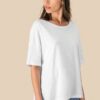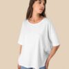 100% coton biologique. Coton peigné. Maille jersey aspect flammé. Coupe oversize à épaules tombantes. Lavé aux enzymes. Coutures latérales. Encolure ronde avec bord côte 1 x 1. Renfort épaule. Finition intérieur col avec bande de propreté en matière principale ton sur ton. Finition double surpiqûre bas de manches et de vêtement.