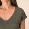 100% lin. Maille. Coupe ajustée. Coutures latérales. Col V en matière principale. Bande de propreté intérieure col en matière principale. Ourlet double surpiqûre bas de manches et bas de vêtement.