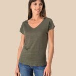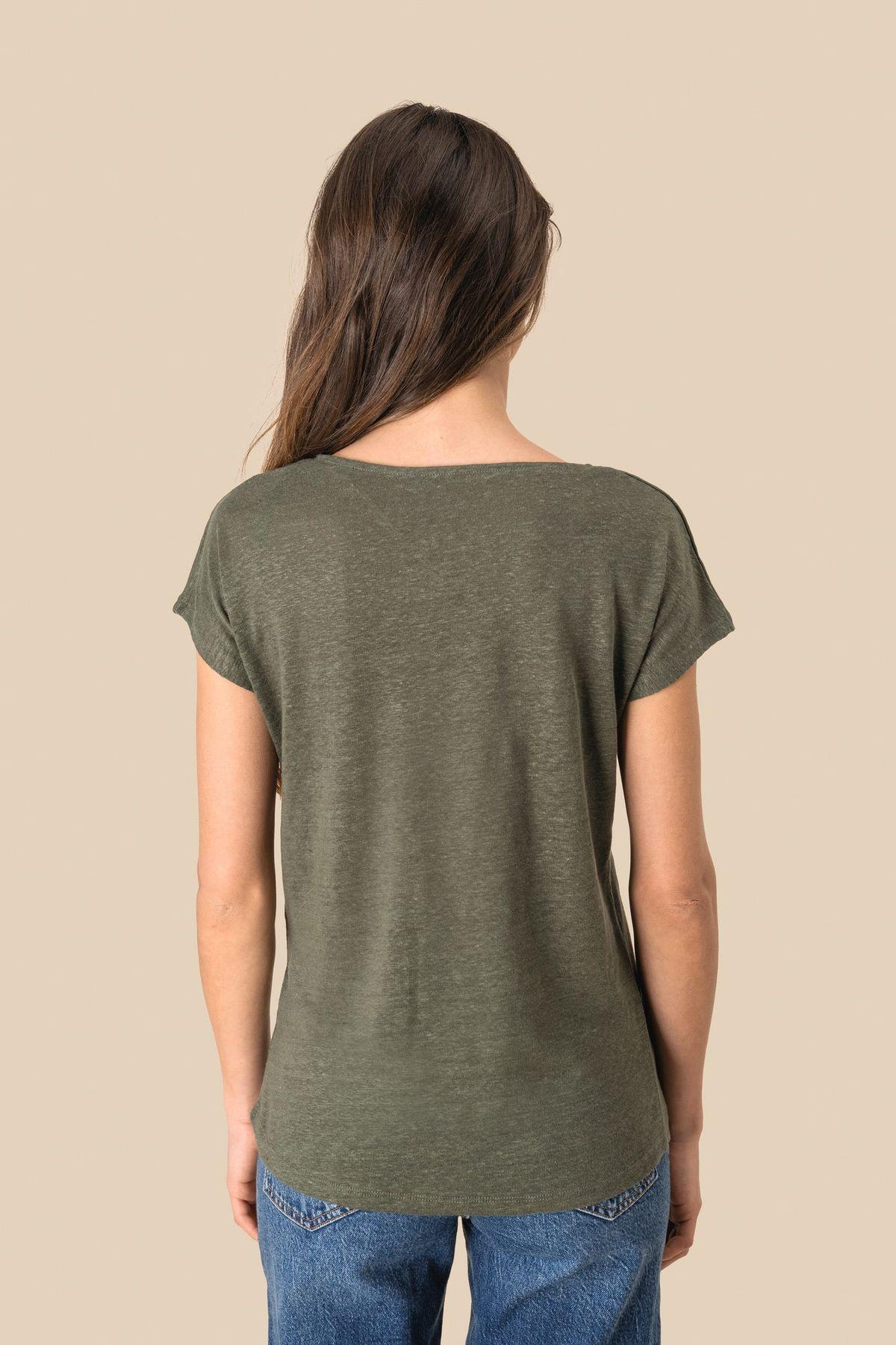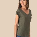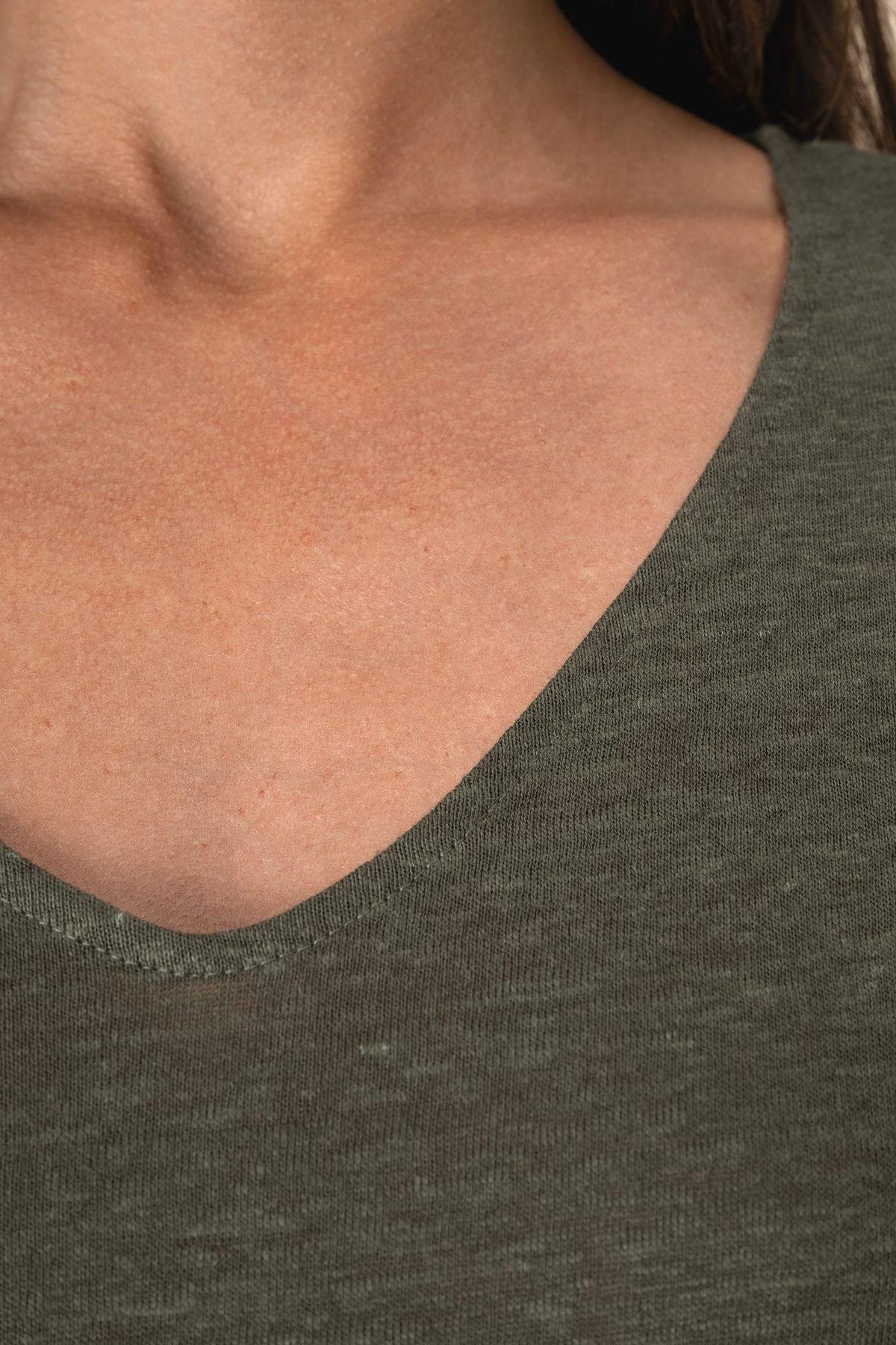 100% lin. Maille. Coupe ajustée. Coutures latérales. Col V en matière principale. Bande de propreté intérieure col en matière principale. Ourlet double surpiqûre bas de manches et bas de vêtement.