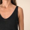 100% lin. Maille. Coupe ajustée. Encolure devant et dos en V. Finition encolure et emmanchures avec biais en matière principale et piqûre nervure. Fentes sur les côtés. Ourlet simple surpiqûre bas de vêtement.