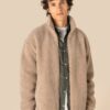 100% polyester. Coupe droite à épaules tombantes. Matière en sherpa avec doublure principale en jersey et doublure manches en taffetas pour un enfilage facilité. Col montant doublé en matière principale. Finition intérieur col avec bande de propreté en chevron ton sur ton. Zip en plastique avec curseur en métal ton sur ton. Bas de manches et de vêtement élastiqués. Deux poches passepoilées devant. Zip de personnalisation intérieur en bas de vêtement.
