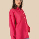 100% lin. Tissé. Coupe oversize à épaules tombantes. Patte de boutonnage avec boutons effet nacré ivoire. Bas de manches avec poignets boutonnés et fente patte capucin. Ourlet simple surpiqûre bas de vêtement. Vêtement lavé après montage : les couleurs peuvent légèrement varier d’une pièce à l’autre.