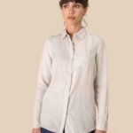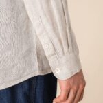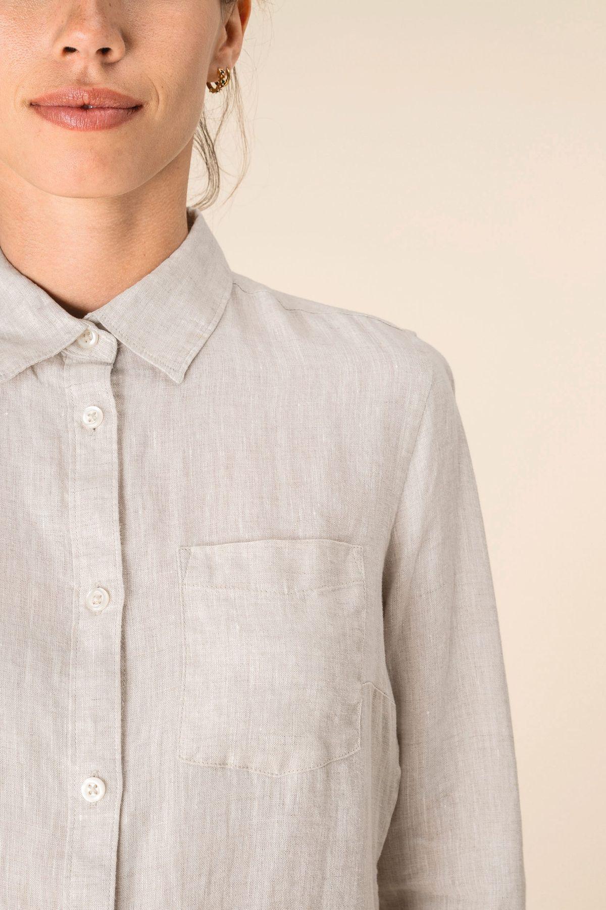 100% lin. Tissé. Coupe ajustée. Patte de boutonnage classique avec boutons effet nacré. Poche poitrine côté coeur. Empiècement dos avec plis d’aisance. Poignet boutonné avec patte capucin. Galon contrasté. Intérieur pied de col Natural. *La couleur Linen n’a pas subi de teinture, et peut varier d’un produit à l’autre.