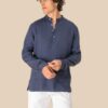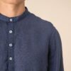 100% lin. Tissé. Coupe ajustée. Aspect délavé. Col mao. Patte de boutonnage rapportée avec boutons contrastés en plastique recyclé effet nacré. Poignet boutonné avec patte capucin. Empiècement dos doublé. Ourlet simple surpiqûre bas de vêtement. Bas de vêtement légèrement arrondie et finition côté hirondelle pour plus de renfort. Vêtement teint en pièce après montage : les couleurs peuvent légèrement varier d’un produit à un autre. Ce produit est susceptible de déteindre au contact avec des surfaces ou vêtements clairs.