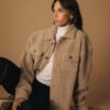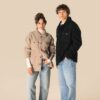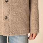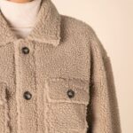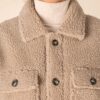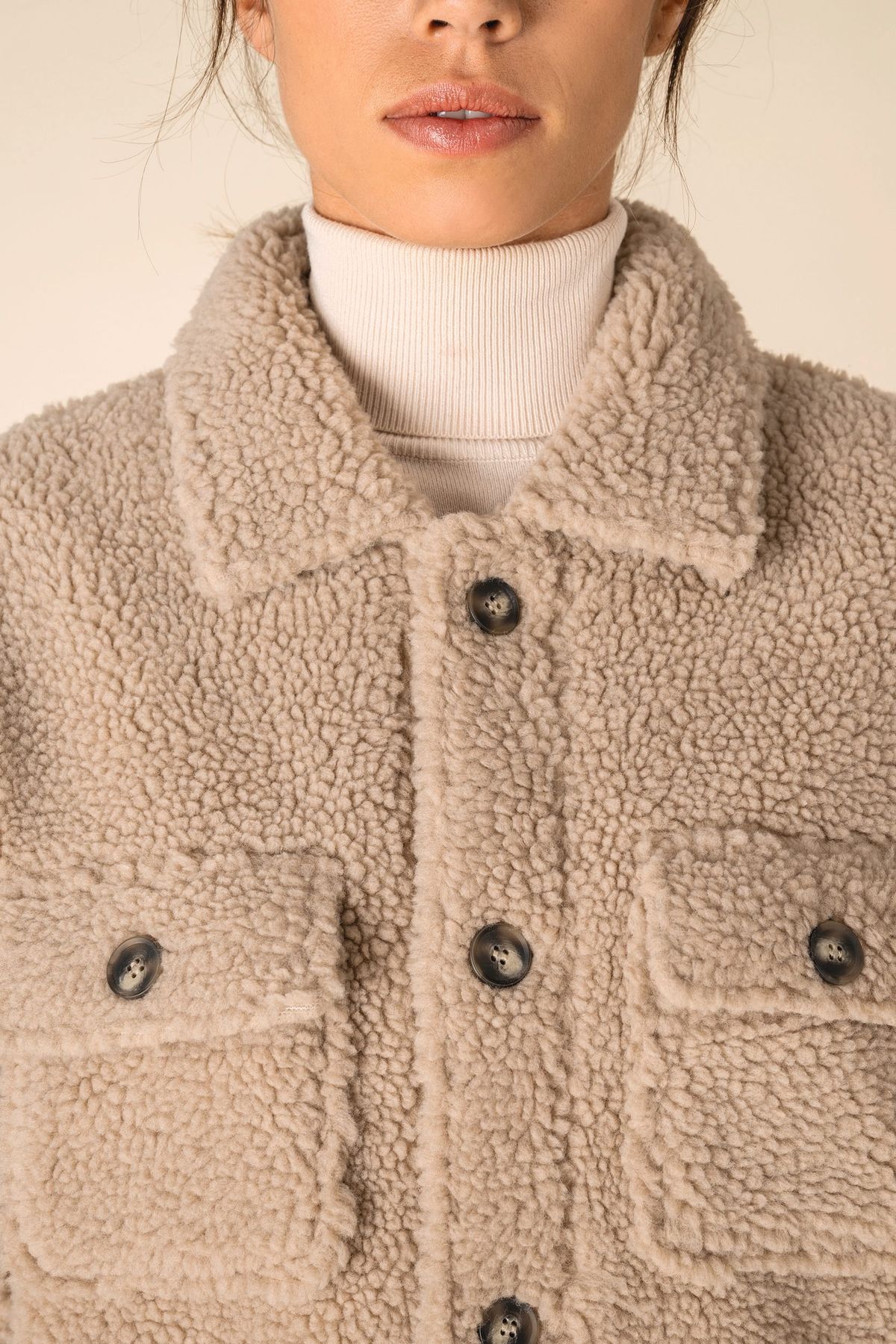 100% polyester. Coupe droite à épaules tombantes. Matière en sherpa avec doublure principale en jersey et doublure manches en taffetas pour un enfilage facilité. Col doublé en matière principale. Patte de boutonnage et poches poitrine à rabat fermées par des boutons en plastique effet corne. Finition intérieur col avec bande de propreté en chevron ton sur ton. Ourlet bas de manches et de vêtement avec simple surpiqûre. Zip de personnalisation intérieur en bas de vêtement.