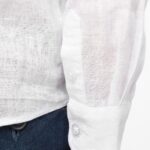 100% lin. Tissé. Coupe ajustée. Coutures latérales. Patte de boutonnage rapportée avec boutons effet nacré en plastique recyclé. Bande intérieure encolure en chevrons. Empiècement dos doublé. Patte capucin aux poignets arrondis avec boutonnage. Ourlet simple surpiqûre bas de vêtement et dessous de manches avec double surpiqûre. Vêtement lavé après montage : les couleurs peuvent varier d’un produit à l’autre.