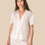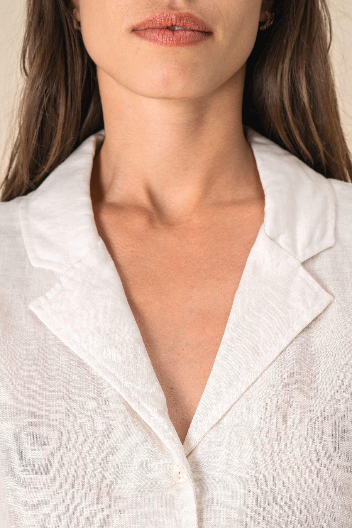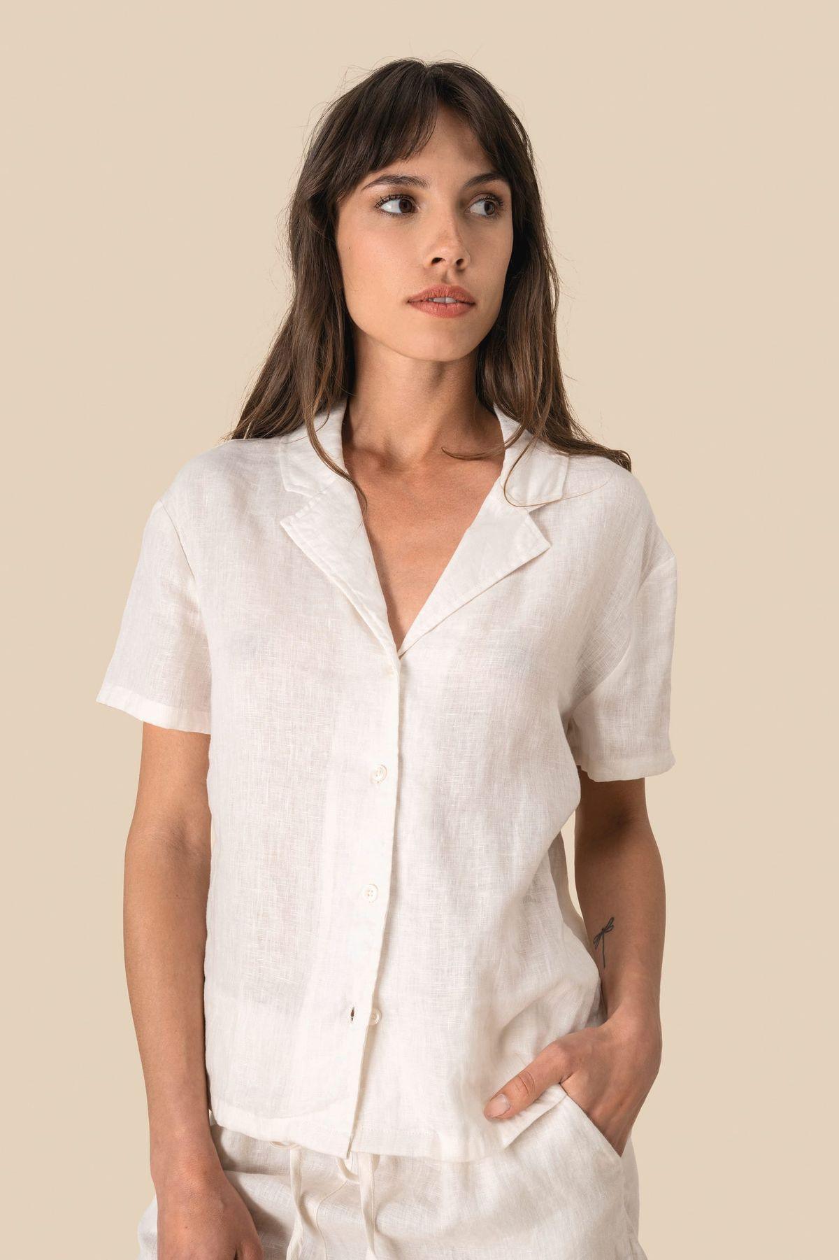 SP523 – Chemise à col bowling manches courtes en lin femme