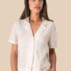 100% lin. TissĂ©. Coupe droite. Col bowling. Patte de boutonnage avec boutons blancs effet nacrĂ© en plastique recyclĂ© sur toutes les couleurs et parmenture en finition intĂ©rieure. Empiècement dos doublĂ©. Ourlet simple surpiqĂ»re bas de manches et de vĂŞtement. VĂŞtement lavĂ© après montage : les couleurs peuvent varier d’un produit Ă l’autre.