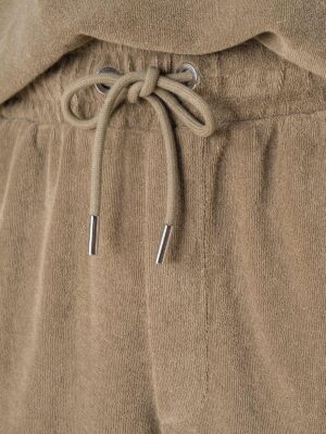 80% coton biologique / 20% polyester recyclé post-consumer. Fabriqué au Portugal. Coton peigné. Matière éponge. Lavé aux enzymes. Taille élastiquée avec cordons de serrage et point d’arrêt au milieu dos. Œillets et embouts de cordon en métal. Fausse braguette fantaisie. Poches côtés et une poche passepoilée au dos. Ourlet bas de jambe double surpiqûre.