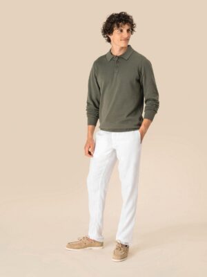 100% lin. Tissé. Aspect délavé. Ceinture surpiquée avec cordon plat en matière principale ton sur ton et œillet brodé. Finition ceinture intérieure en biais ton sur ton et passants devant et dos. Braguette avec surpiqûre avec patte de boutonnage, boutons en plastique recyclé ton sur ton. Deux poches passepoilées côtés et dos de vêtement ainsi qu’une poche monnaie côté droit au porté. Piqûre nervure fourche devant et dos pour plus de renfort. Ourlet simple surpiqûre bas de vêtement. Vêtement teint en pièce après montage : les couleurs peuvent légèrement varier d’un produit à un autre. Ce produit est susceptible de déteindre au contact avec des surfaces ou vêtements clairs.